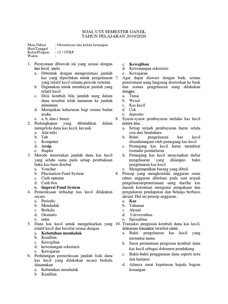 Soal smk administrasi keuangan guru ilmu sosial. Bentuk sederhana dari adalah 17. Uji kompetensi administrasi perkantoran 2018 2019 smk negeri 2. Akuntansi keuangan kelas 11 guru ilmu sosial. Soal ulangan sem 1 otk kepegawaian kelas 12 otkp.